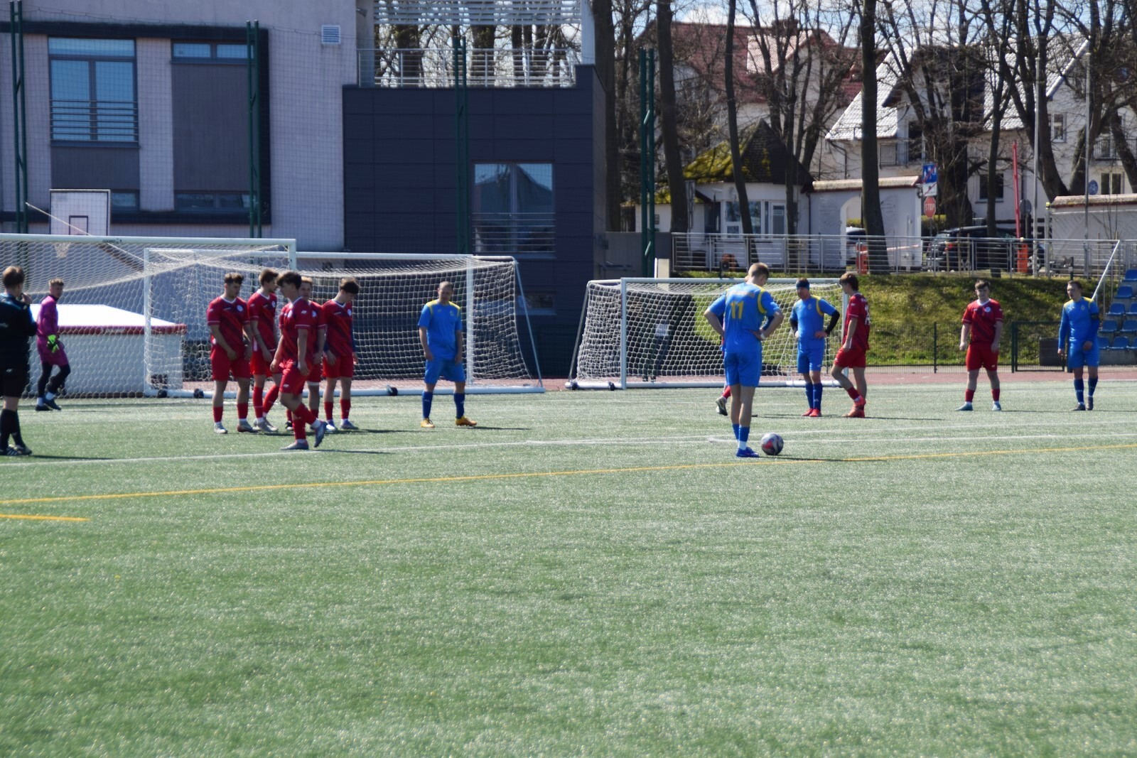 W pierwszej połowie graliśmy z dość silnym wiatrem. Widać było, że byliśmy zbyt spięci, stąd dużo nerwowości i niedokładności ale pomimo tego połówkę zakończyliśmy strzeleniem gola (cudowna bramka "Ikony MKS-u") i dwoma przestrzelonymi "setkami".